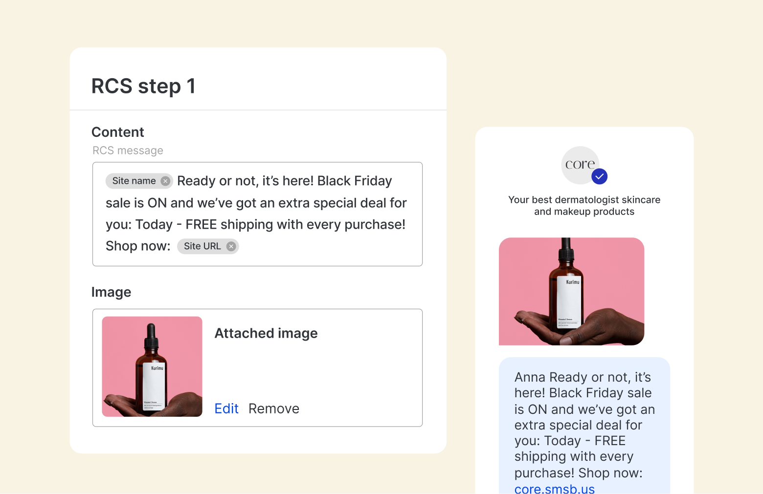 You can send personalized messages to specific segments and make your marketing more effective. With Rich Communication Services (RCS), you can include images, buttons, and interactive content in your text messages to make them more engaging. Alternatively, you can update your subscribers automatically based on specific actions they’ve taken (such as making a purchase).
